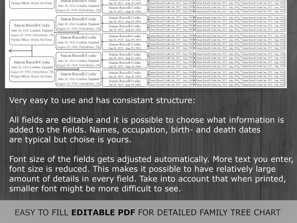 • 1 X Grey tone Family Tree with "Family Tree"-text", editable custom family name header and editable fields