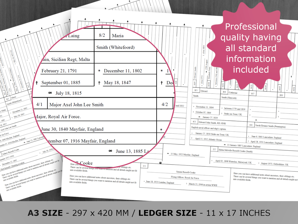 A high quality Ancestor Chart, Printable Editable PDF file.